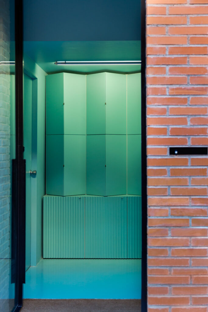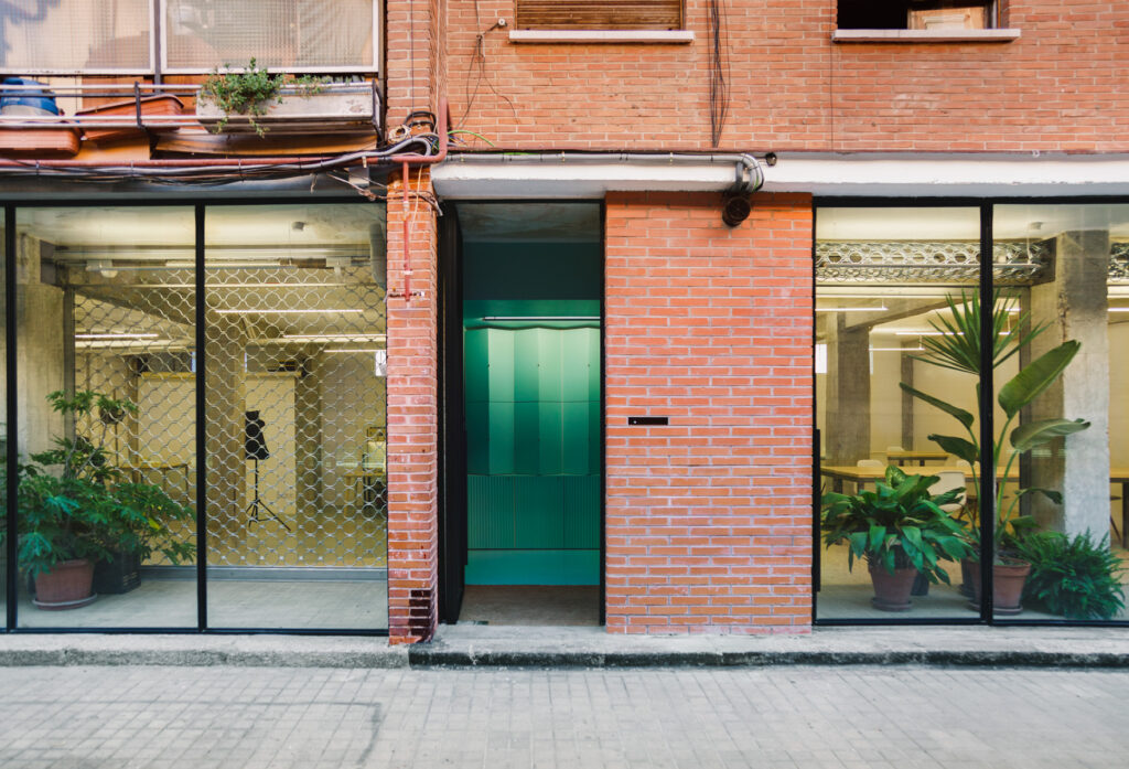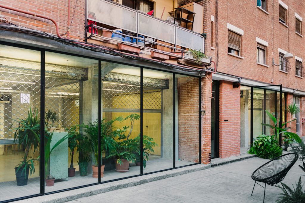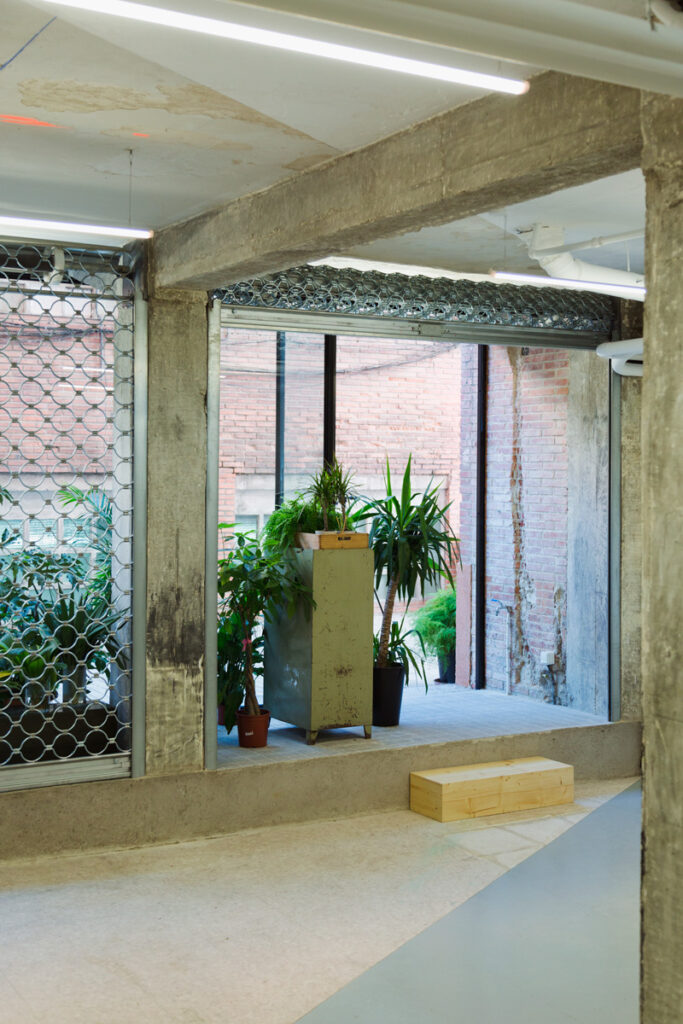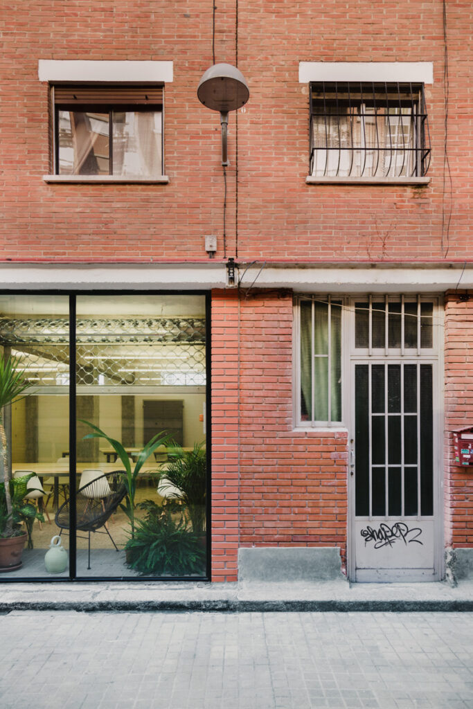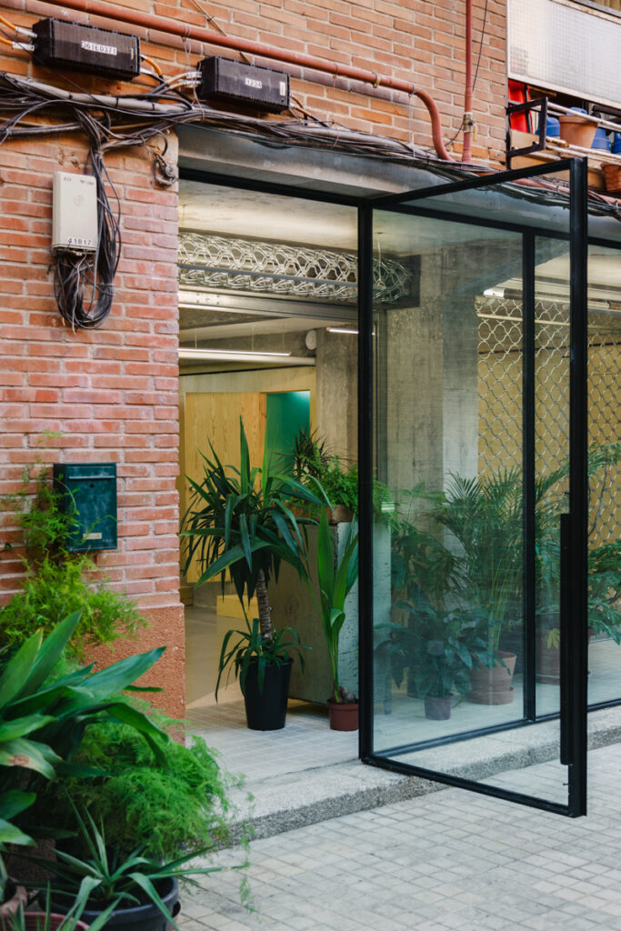 We decided to establish a series of design principles: space optimization, shared facilities and work with the alleyway to turn it into an active frontage. The venue its splitted into two twin spaces thanks to a central element that provides services to both halves. This strategy allow us to maximize the available surface to be used with the rest of the uses. Heating, air conditioning, bathrooms, kitchens and storage space is shared by both sides. This space division allows simultaneously of different activities and conditions to take place in the same venue, meeting all the client aspirations and desires now and, potentially, in the future. The exiting limit created by the brick wall is turned into an intermediate space between interior and exterior. A green filter, a security layer, a container of possibilities are the tools to make the alleyway and the interior a more desirable space.